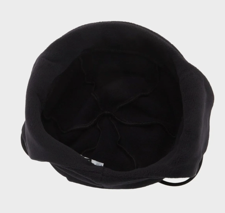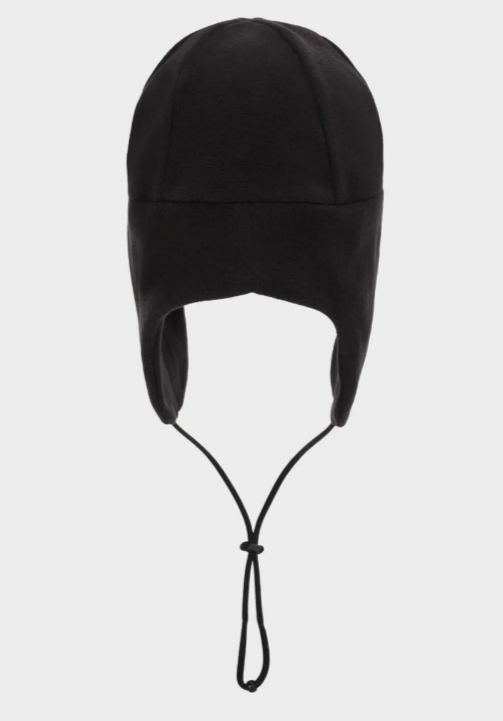 This is an earflap-style beanie made from lightweight and warm fleece material.