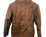 Combat the cold with this stylish and functional olive green puffer jacket. This is not just a coat; it's a shield against the elements designed for girls. The quilted construction offers exceptional warmth without added bulk, making it ideal for active kids. Functional details include a comfortable hood, a cinchable waist that provides a flattering fit, and secure pockets for keeping essentials safe. Good condition with the exception of some tearing at the wrist as pictured