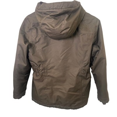 Keywords: The North Face, Girls jacket, Puffer coat, Down fill, Olive green, Size L, Winter coat, Kids outerwear, Hooded jacket, Goose down, Warm coat, Outdoor gear, Activewear, School coat
