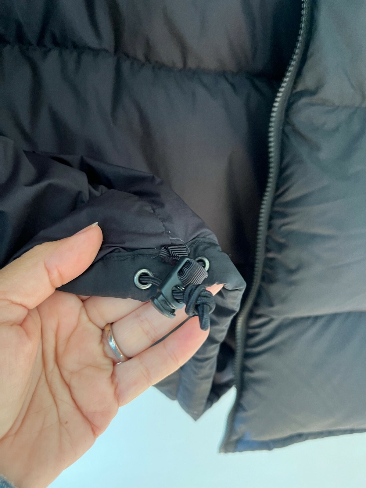 Hem cinch blocks cold air from permeating into layers