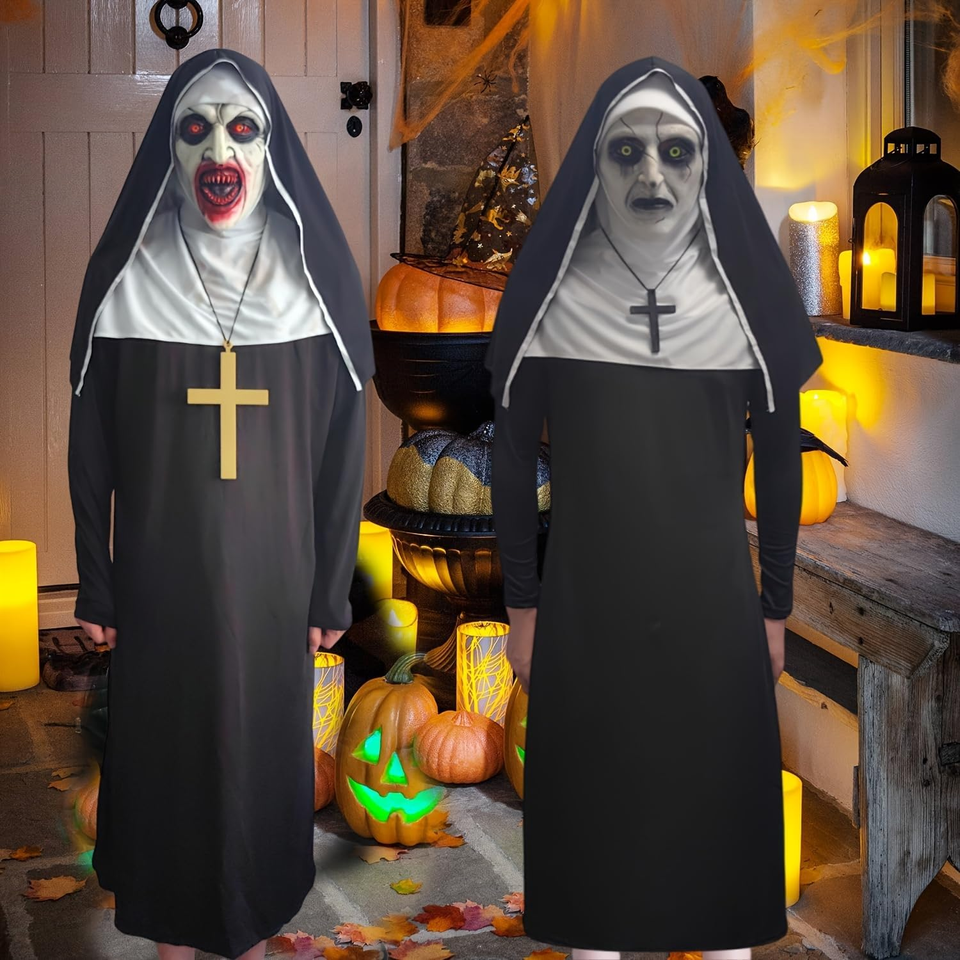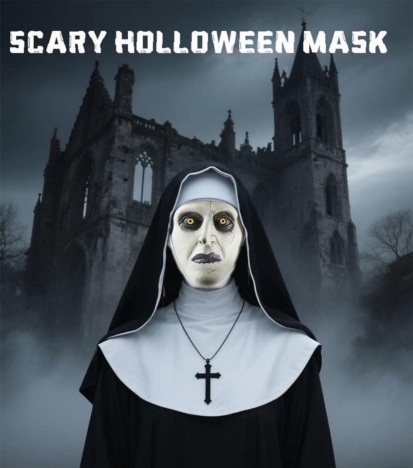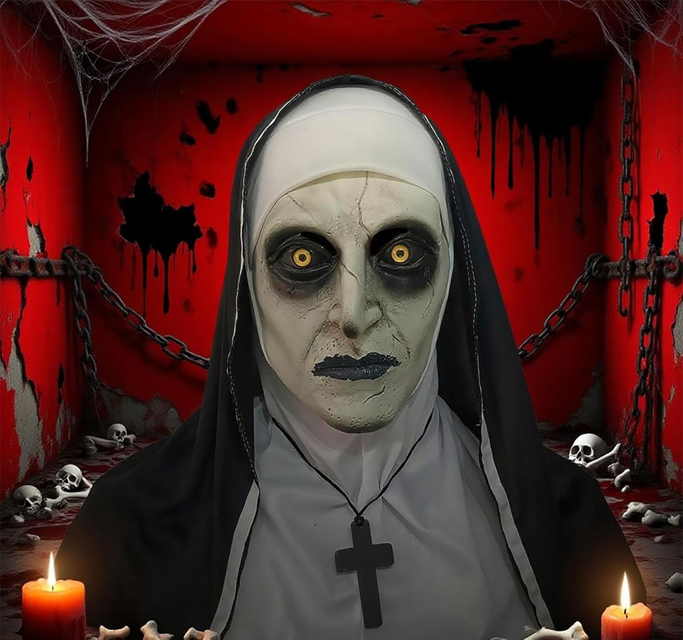 - The Nun Mask Halloween Scary Nun Latex Mask with Cross Necklace