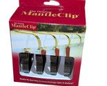 Brand new set of four The Mantle Clips. The original Mantle clip. The best way to hang stockings lights and Garland. Four clips. Hang stockings and decorations, strings, lights or Garland. Sturdy metal construction. Grippers hold tight and mantle surface.