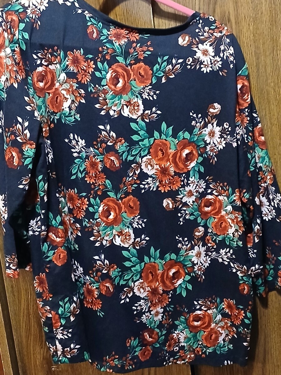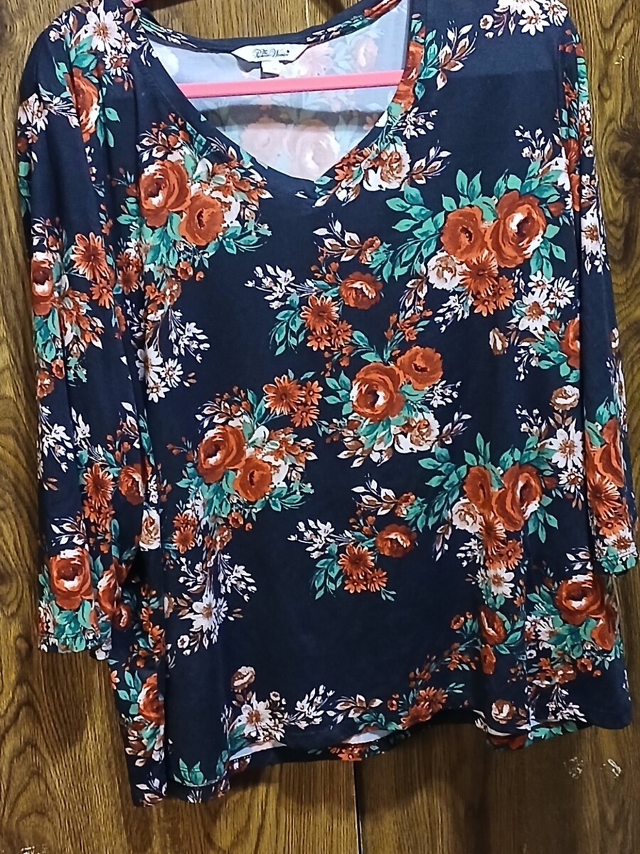 This Pioneer Woman shirt is a stylish and comfortable 2XL black top with a vibrant red floral rose design, perfect for casual occasions. The V-neck tunic top features 3/4 sleeves and a pullover for easy wear. Made from a blend of polyester and spandex, it offers a relaxed fit with a touch of stretch for added comfort. Ideal for all seasons, this lightweight blouse is machine washable and suitable for summer, fall, and spring wear.
