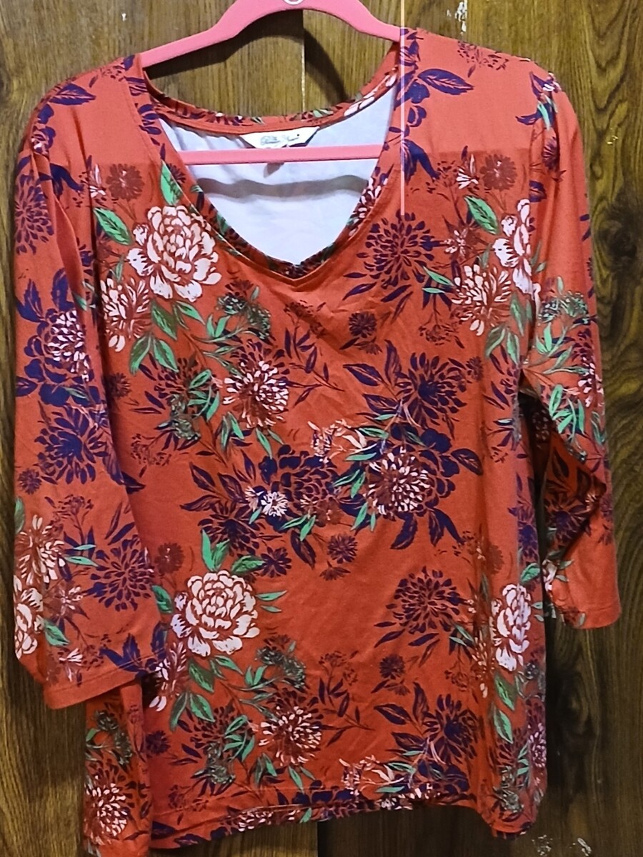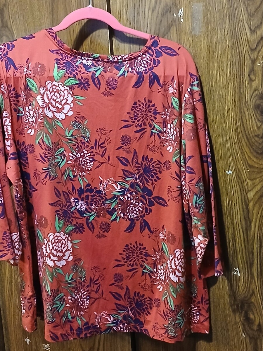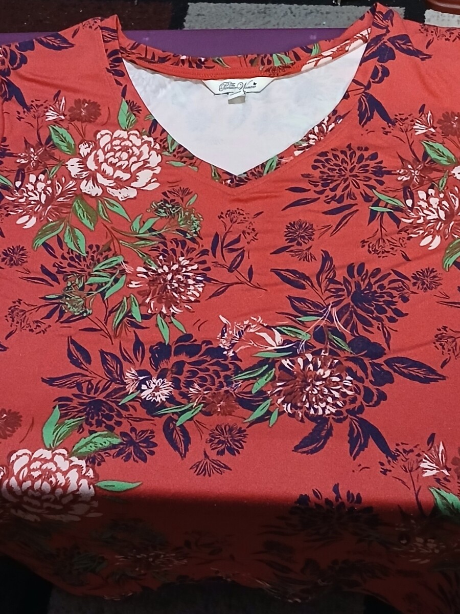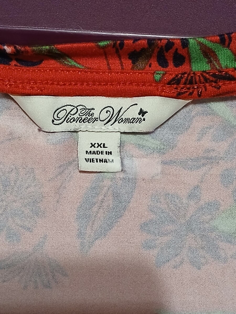 - The Pioneer Woman Shirt Womens 2XL RED Floral Peony V Neck Tunic Top