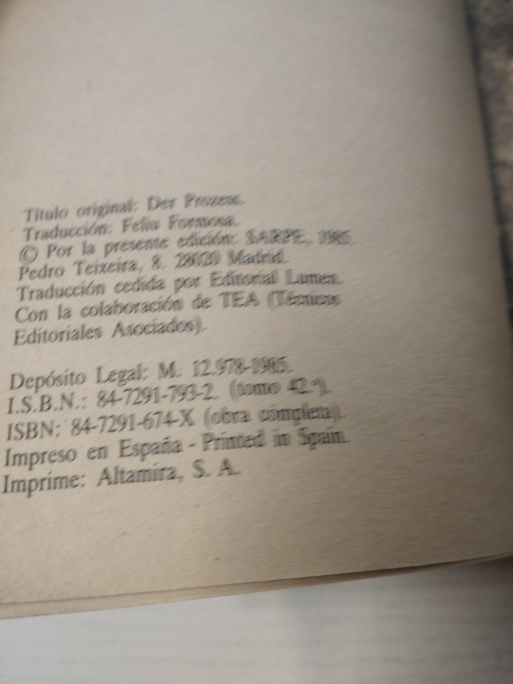 - The Process Franz Kafka Sarpe 1985 - Spanish BOOK Am- show original title Or...