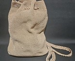The Sak Crochet Drawstring Backpack Purse Tan Khaki Boho Bucket Bag Slouchy