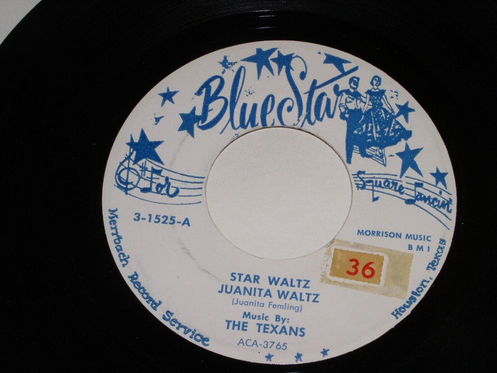 This is an original 45 rpm phonograph record by The Texans, entitled "Star Waltz Juanita Waltz". Flipside: "Whispering Mixer". Record label: Blue Star 3-1525.