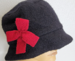 The Tog Shop Wool Womens Black Bucket Hat Red Bow Winter Warm Cute. Images show actual hat that will ship.