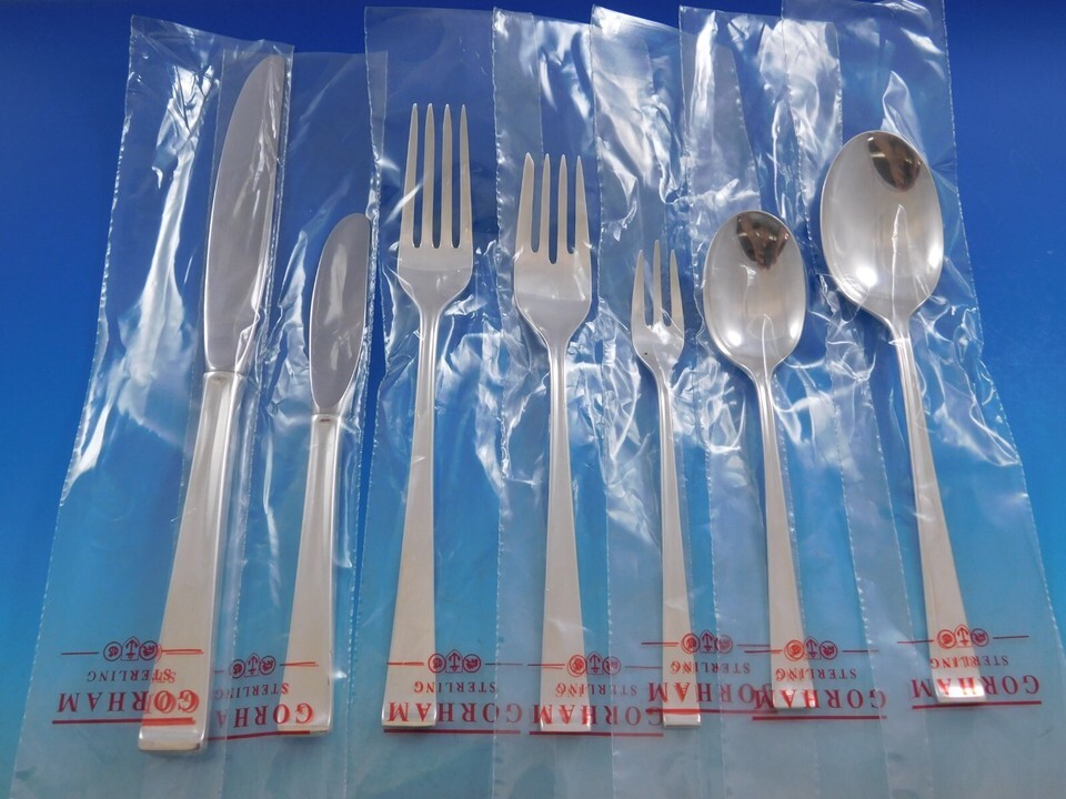 - Theme by Gorham Sterling Silver Flatware Service 12 Set 88 pc Modern New Unused