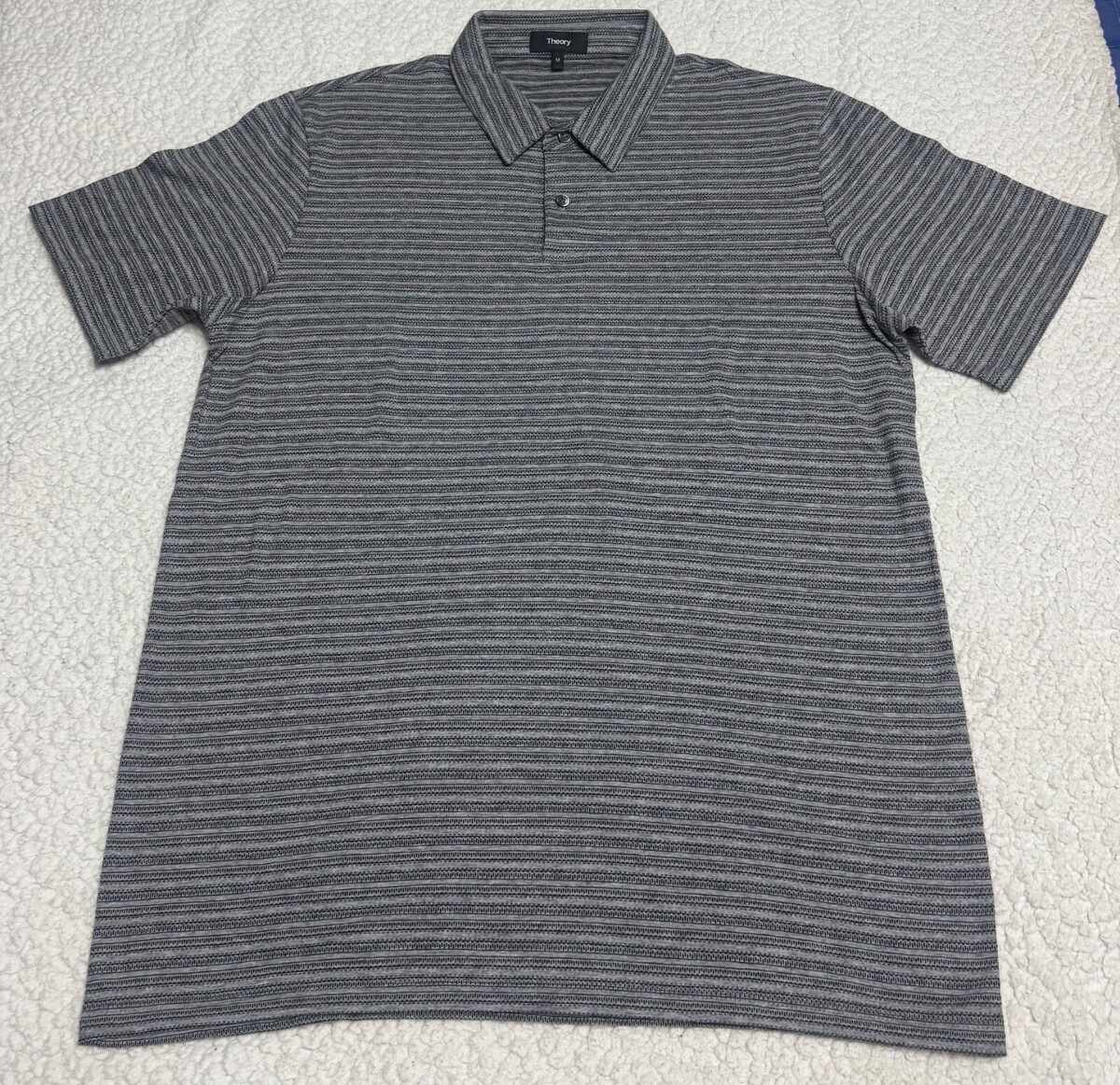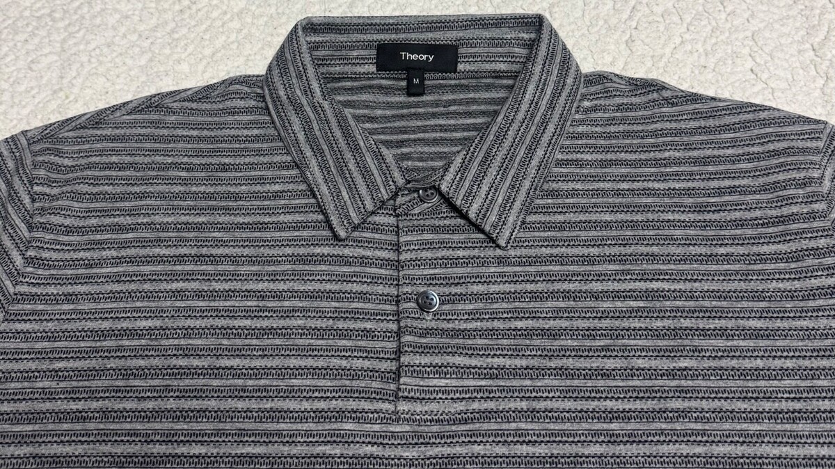 - Theory Men's Gray Striped Short Sleeve Polo T-Shirt Cotton Blend Size M NWOT