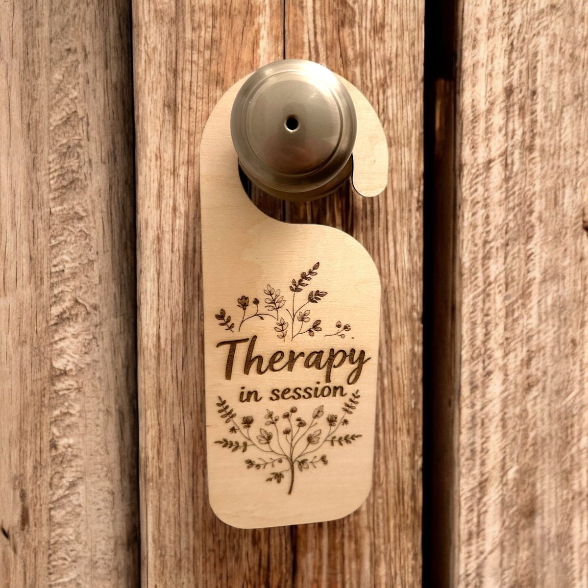Therapy In Session Wooden Door Sign | Laser Engraved Door Hanging Sign