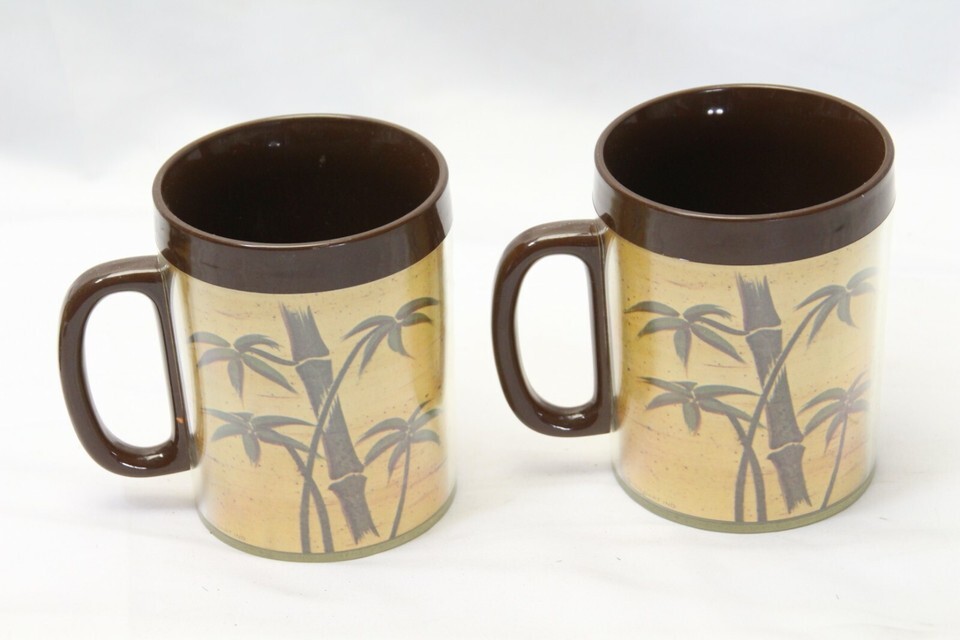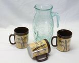 Thermo Serv Mugs Palm Trees Green Glass Pitcher Hawaiian Bar Tropical