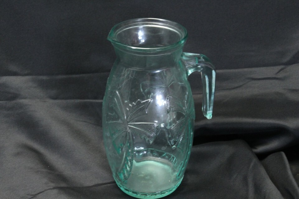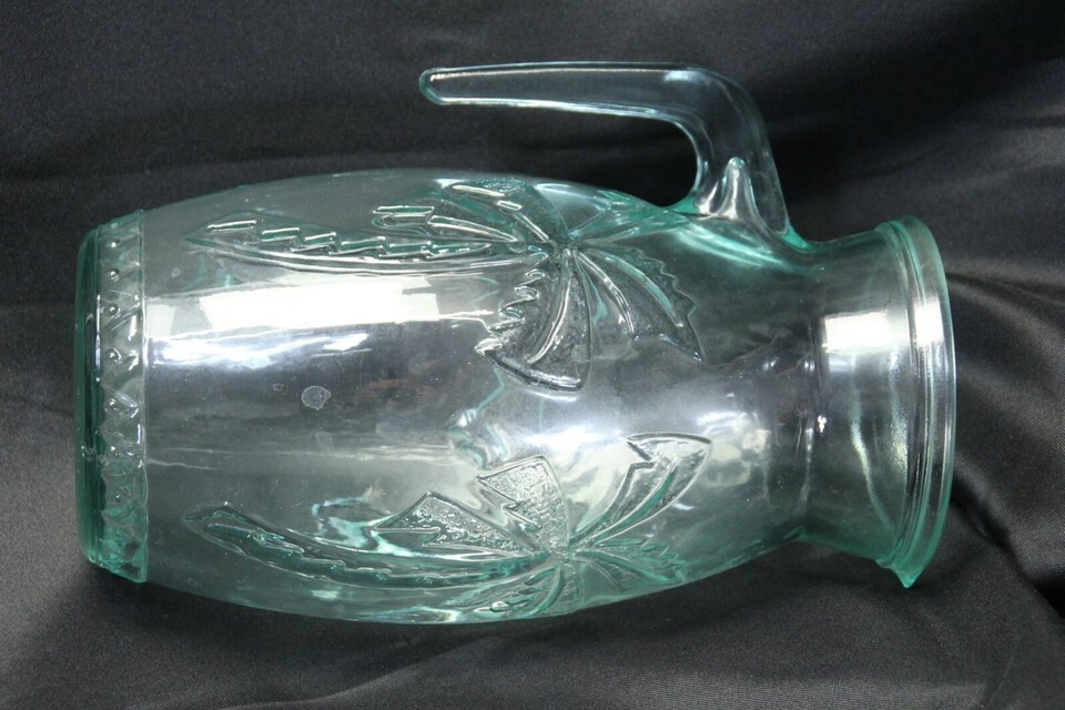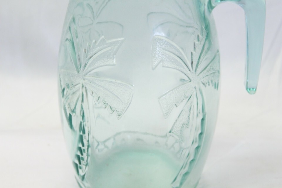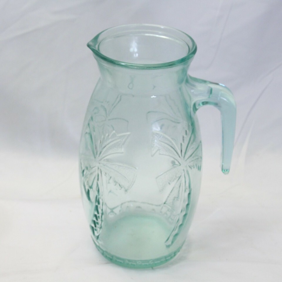 - Thermo Serv Mugs Palm Trees Green Glass Pitcher Hawaiian Bar Tropical