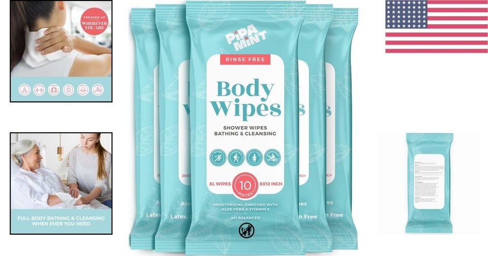 - Thick and Durable Bath Wipes - 50 XL No-Rinse Shower Wipes for All Skin Types