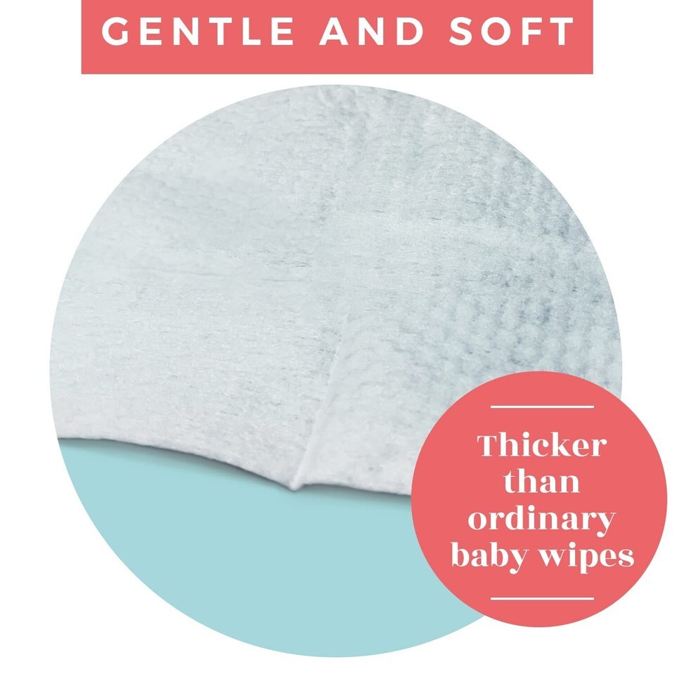 Soft and gentle wipes enriched with Aloe Vera extract Vitamin E.