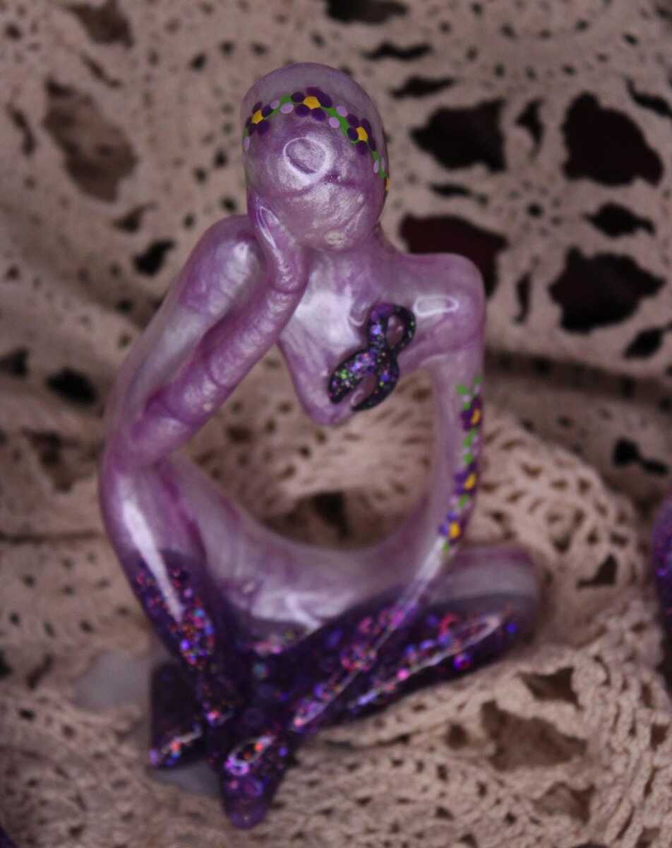 - Thinker Statues SET OF 3 Purple Ribbon Awareness Memory Honor Cancer Shelf Mantl