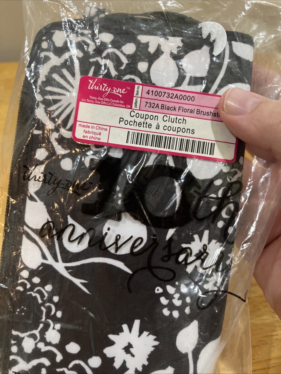 - Thirty One Coupon Clutch Organizer Black & White Floral Brushstrokes Zip Wallet