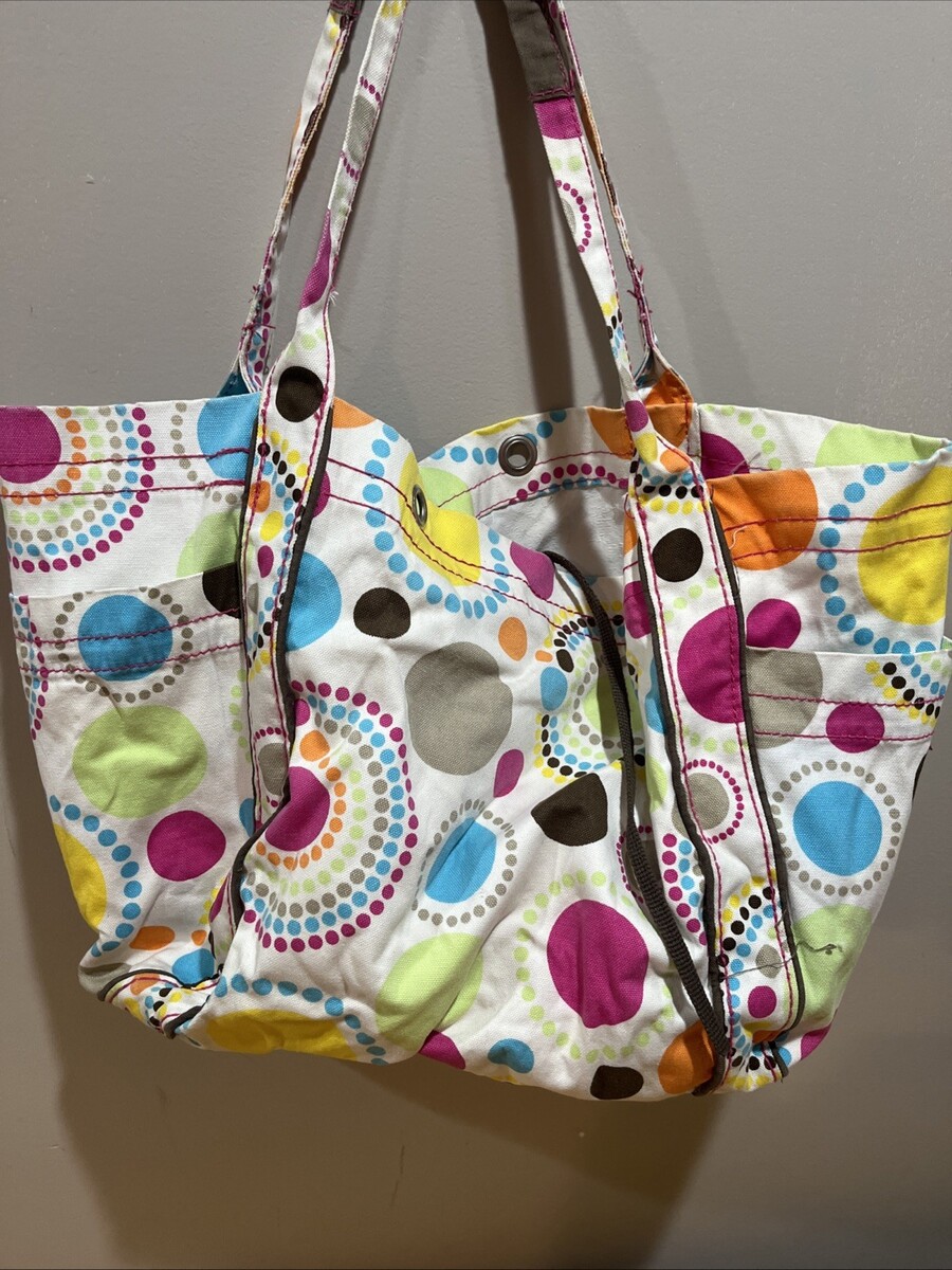 - Thirty One Large Canvas Tote Travel Bag Medallion Citrus Circle Dot Weekender