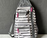 Thirty-One Sling Backpack Gray White Chevron Stripe Crossbody Bag Pink Accents