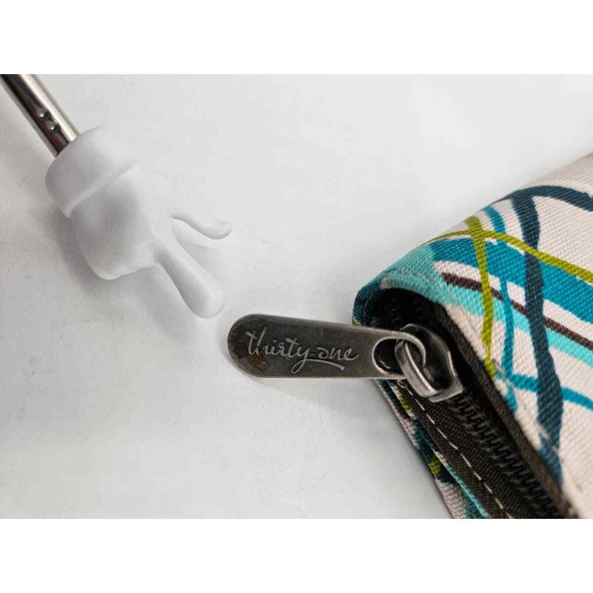 - Thirty One Women's Sea Plaid Pattern Zip Around Wallet Blue Green Brown