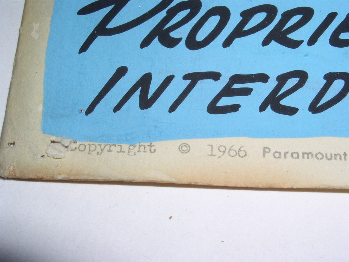 This is a vintage movie lobby card for the movie, "This Property Is Condemned". Dated 1966 Paramount Pictures Corporation. I believe this to be a French Canadian issue due to the writing in the bottom left corner. There is French writing on the back as well, which helps determine its origin.