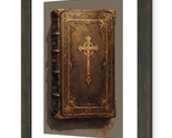 Holy Bible with an ornate, antique design. The cover is adorned with intricate gold engravings, floral motifs, and an elegant central cross that radiates reverence and craftsmanship. The weathered texture of the leather suggests generations of devotion, yet its regal detailing preserves an air of untouched majesty. Warm, subtle lighting highlights every carved line and metallic embellishment, giving the book an almost divine glow. Perfect for spiritual collectors, art lovers, or anyone drawn to pieces that carry depth, history, and elegance, this image embodies both faith and fine artistry—making it a striking addition to any sacred space or refined gallery wall.