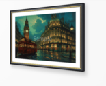 This digital painting captures a lively, rainy night in London