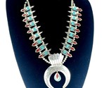 - Thomas Singer Sterling Silver Turquoise and Coral Inlay Squash Blossom Necklace