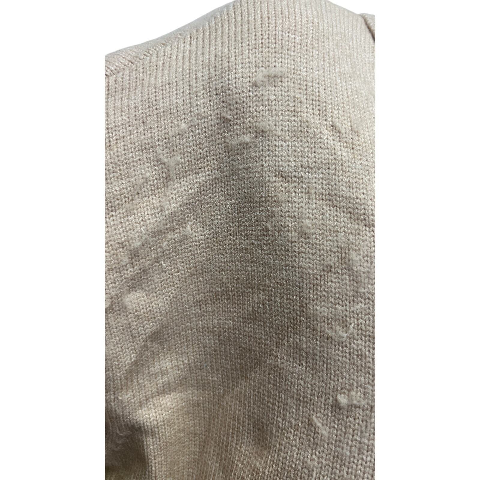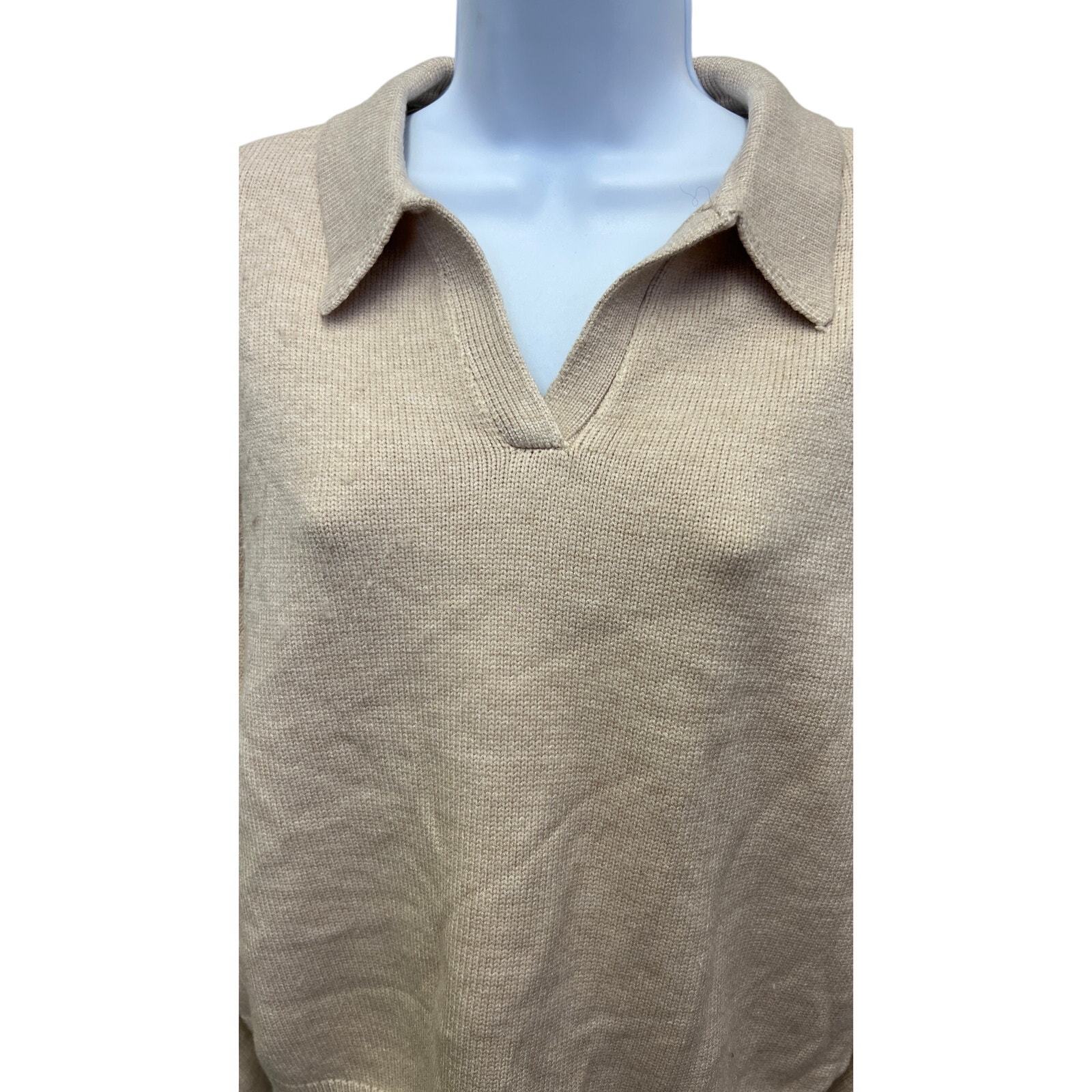 - Thread & Supply Women's Cream Fuzzy Collar V-Neck Sweater - M
