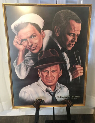 - Three Faces Of Frank Sinatra Framed Painting Debra Colburn Rouen 7/1982 23.5”