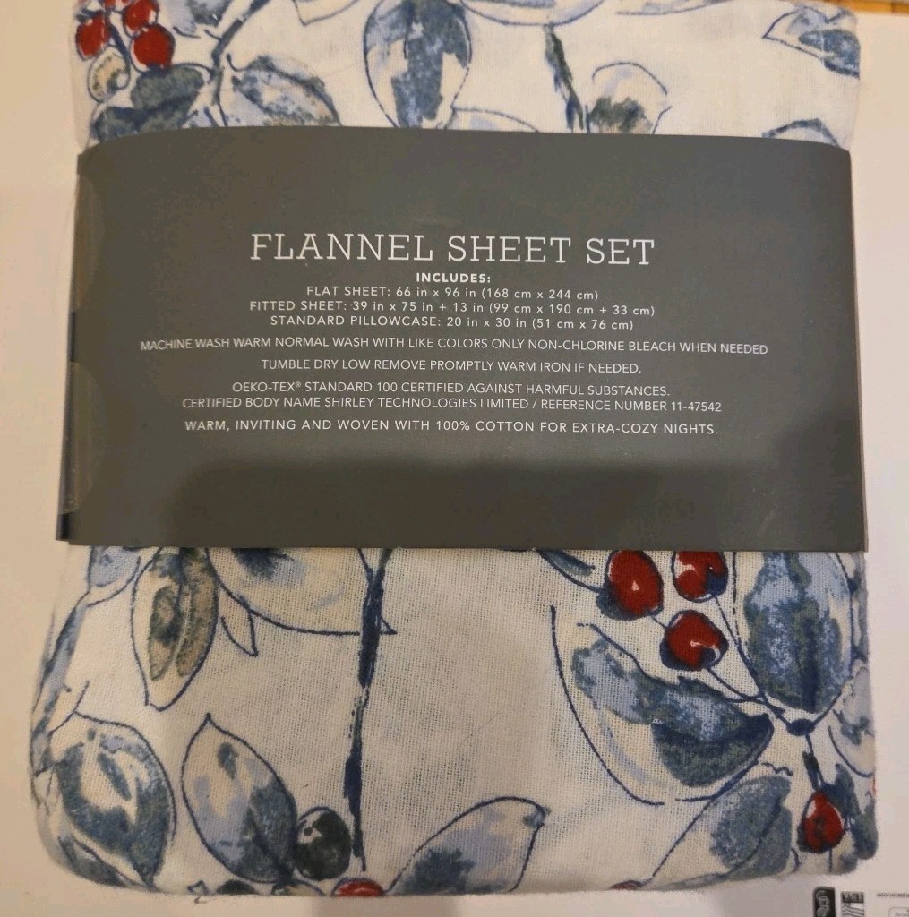 - Threshold Target Twin Flannel Sheet Winter Berries Holiday Set New in Package