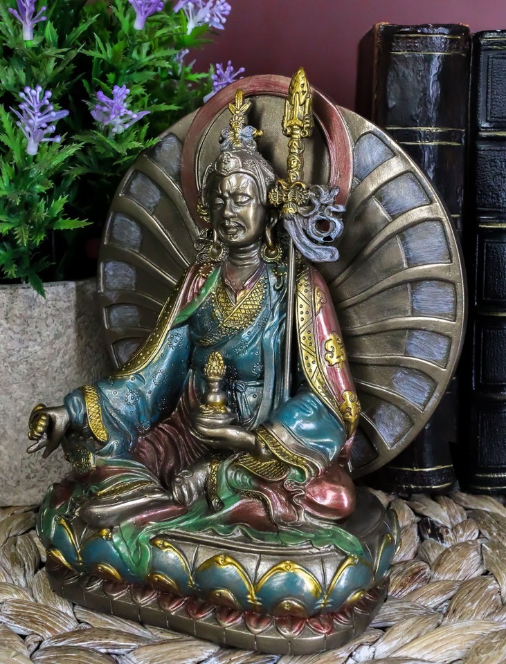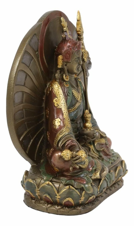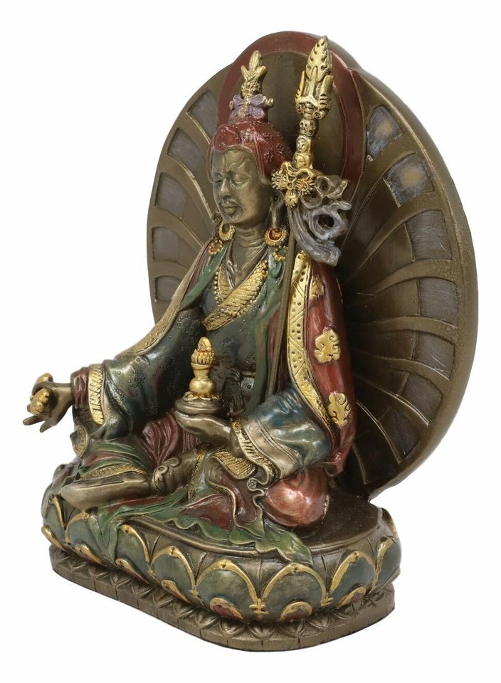 ? This Guru Rinpoche Padmasambhava Statue brings peace and serenity to your home. Padmasambhava was an 8th-century Buddhist master from the Indian subcontinent. A number of legends have grown around Padmasambhava's life and deeds, and he is widely venerated as a "second Buddha" by adherents of Tibetan Buddhism in Tibet, Nepal, Bhutan, the Himalayan states of India, and elsewhere.