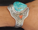 - Tibetan Bracelet Silver Turquoise Coral Cuff Nepalese Bangle Vintage Handmade
