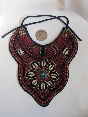 Up for sale is a used Tibetan Tribal Bib Necklace Collar Turquoise Coral Boho Gypsy Shell Red.
