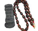 - TIBETISCHE ANTIKE ALTE geschnitzte Rauchquarz PERLEN MALA HALSKETTE SMK-2