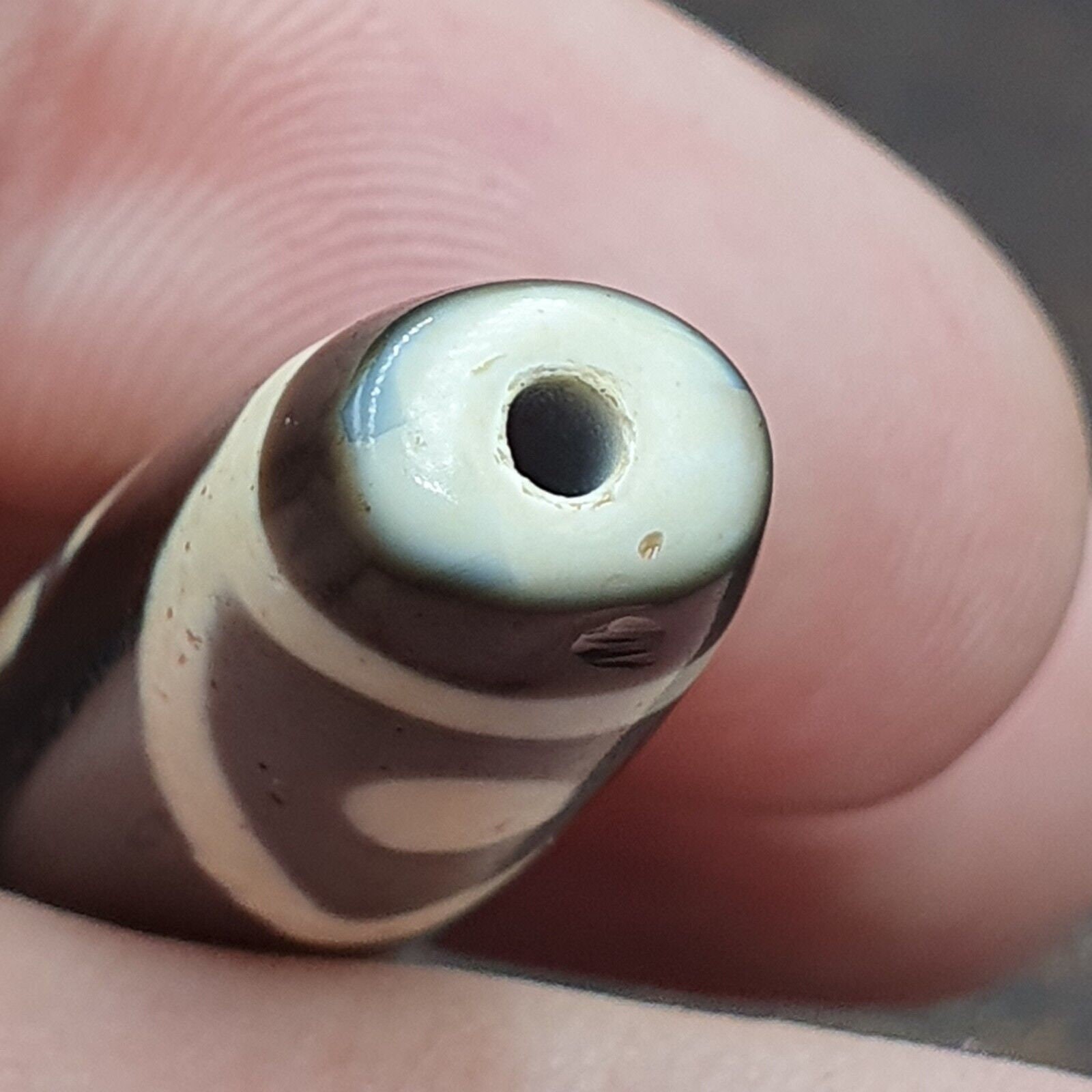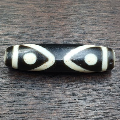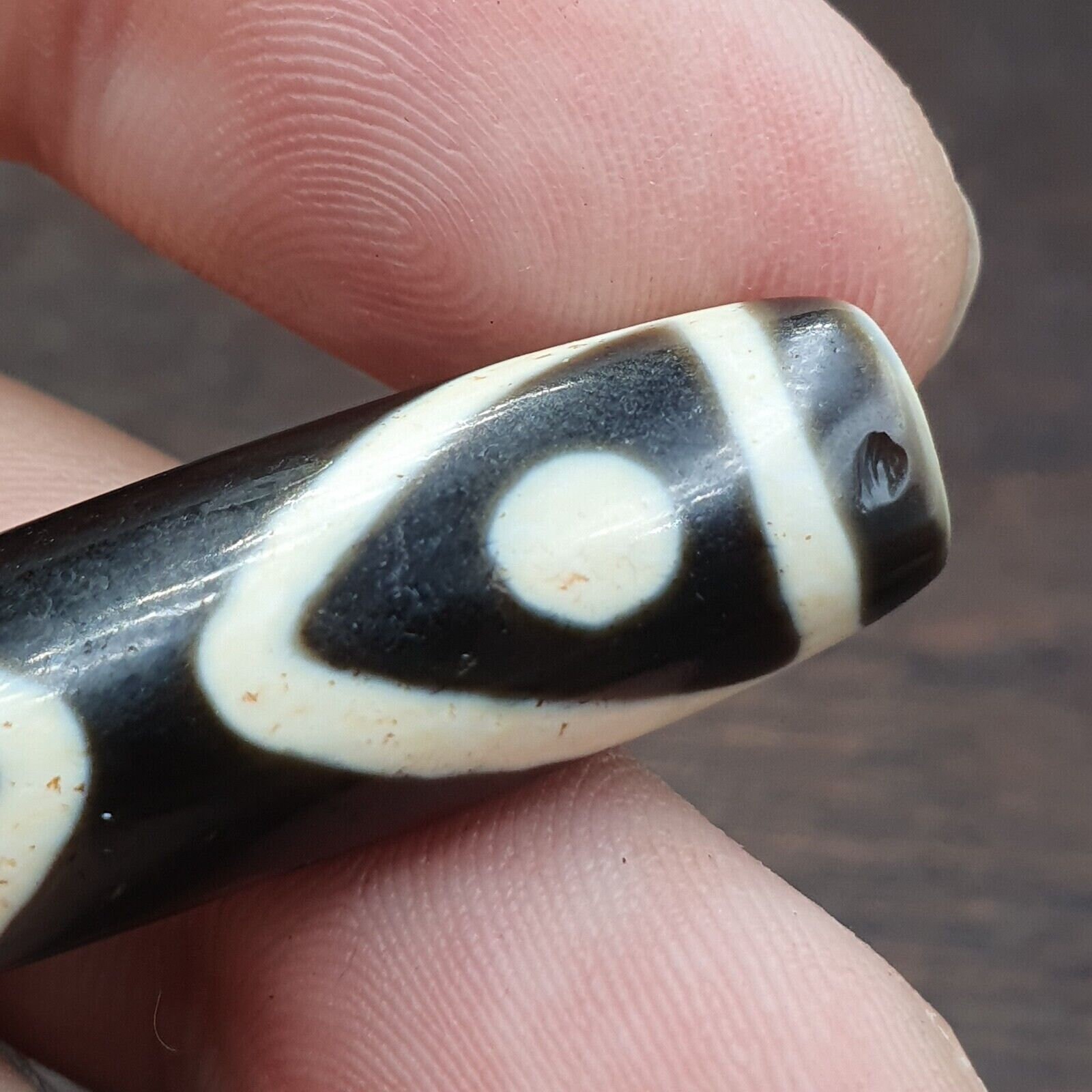 - Tibetisches nepalesisches Himalaya altes Dzi Unikat 3 Ösen Perlen Amulett