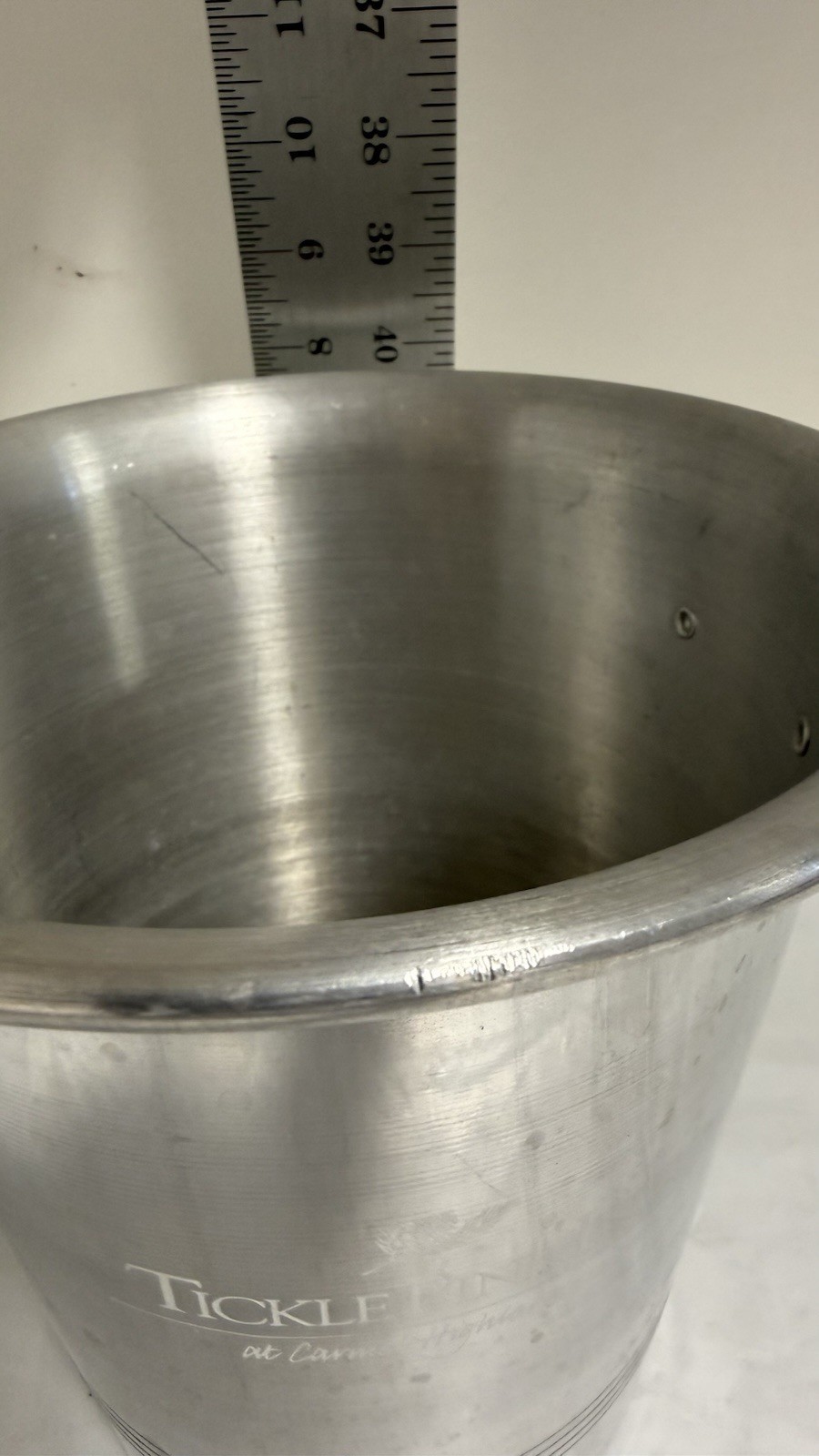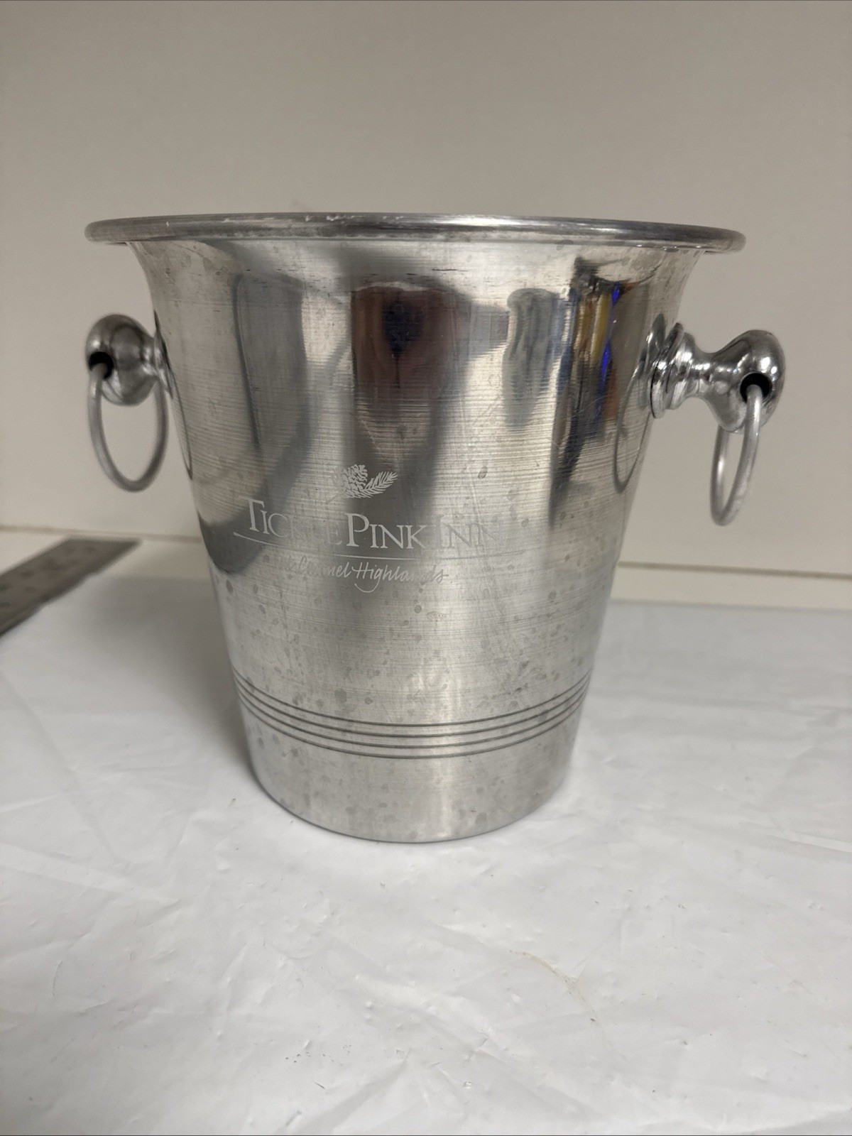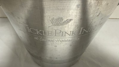 The Tickle Pink Inn At Carmel Highlands Ice Bucket is a stylish and functional addition to any home bar or kitchen. Featuring a beautiful aluminum color, this ice bucket adds a touch of whimsy to parties and gatherings. Made for easy handling and storage of ice, this bucket is both practical and aesthetically pleasing, perfect for keeping drinks cool in style.