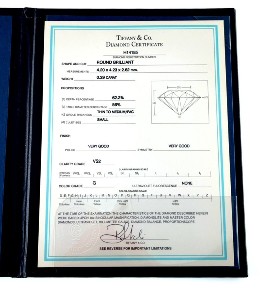 Tiffany and Co. Diamond Certificate