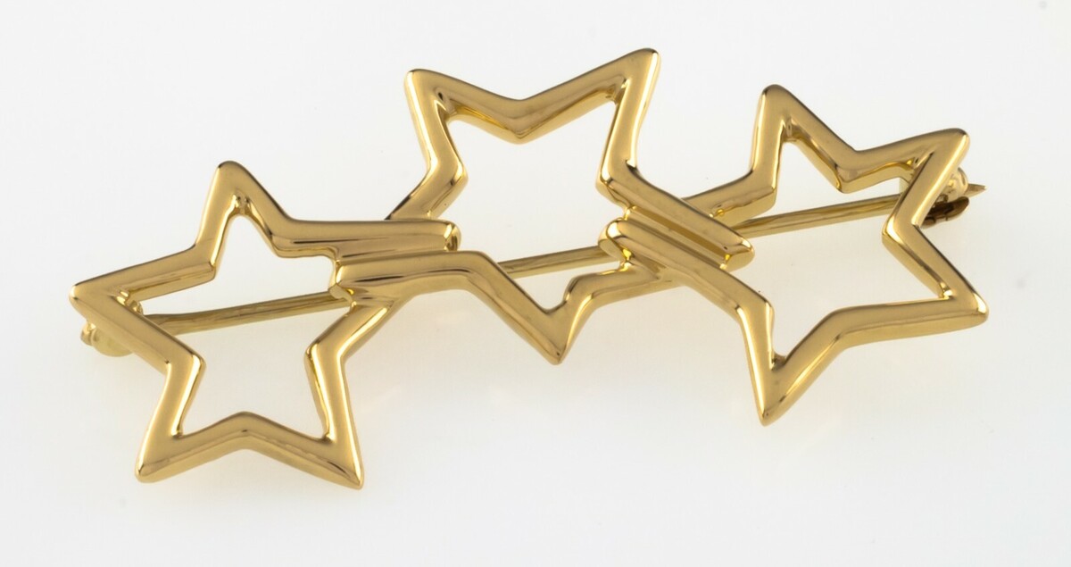- Tiffany & Co. 18k Yellow Gold 3 Star Brooch Vintage 1986 Nice