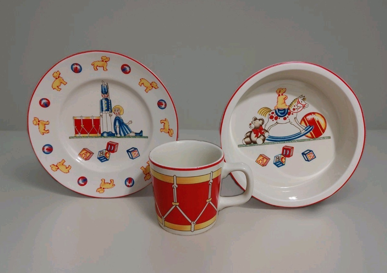 - Tiffany & Co Toys Child Plate Cup Bowl Drummer Baby Shower Birthday Gift 3pc Lot