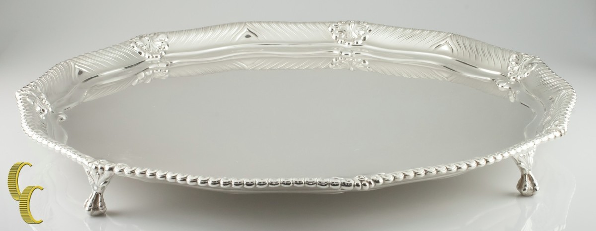 - Tiffany Makers Sterling Silver Large Footed Tray 1888 86.5 ounces Great Antique