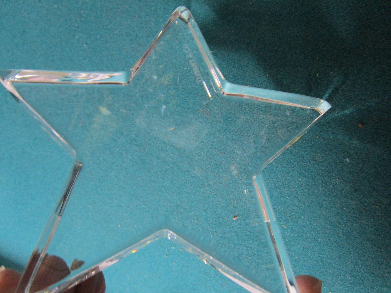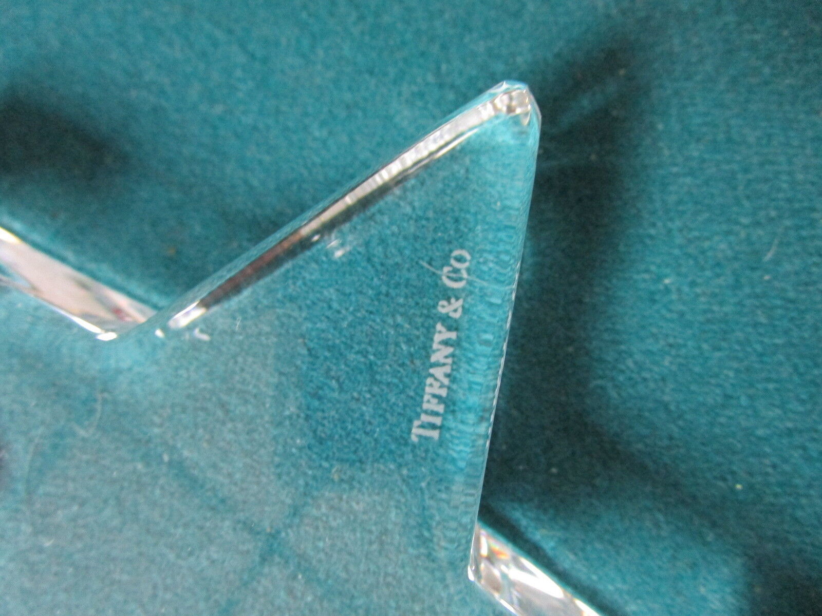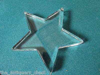 Tiffany Paperweight star crystal glass. 4 1/2" diameter. Original label made in Belgium, no original box, from a closing store, no certs, probably new, it may have very light surface scratches, almost invisible.