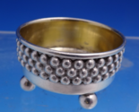 Remarkable Tiffany and Co sterling silver salt dip featuring a gold washed interior, beautiful beaded design, and four ball feet. It is marked #3403/7777.