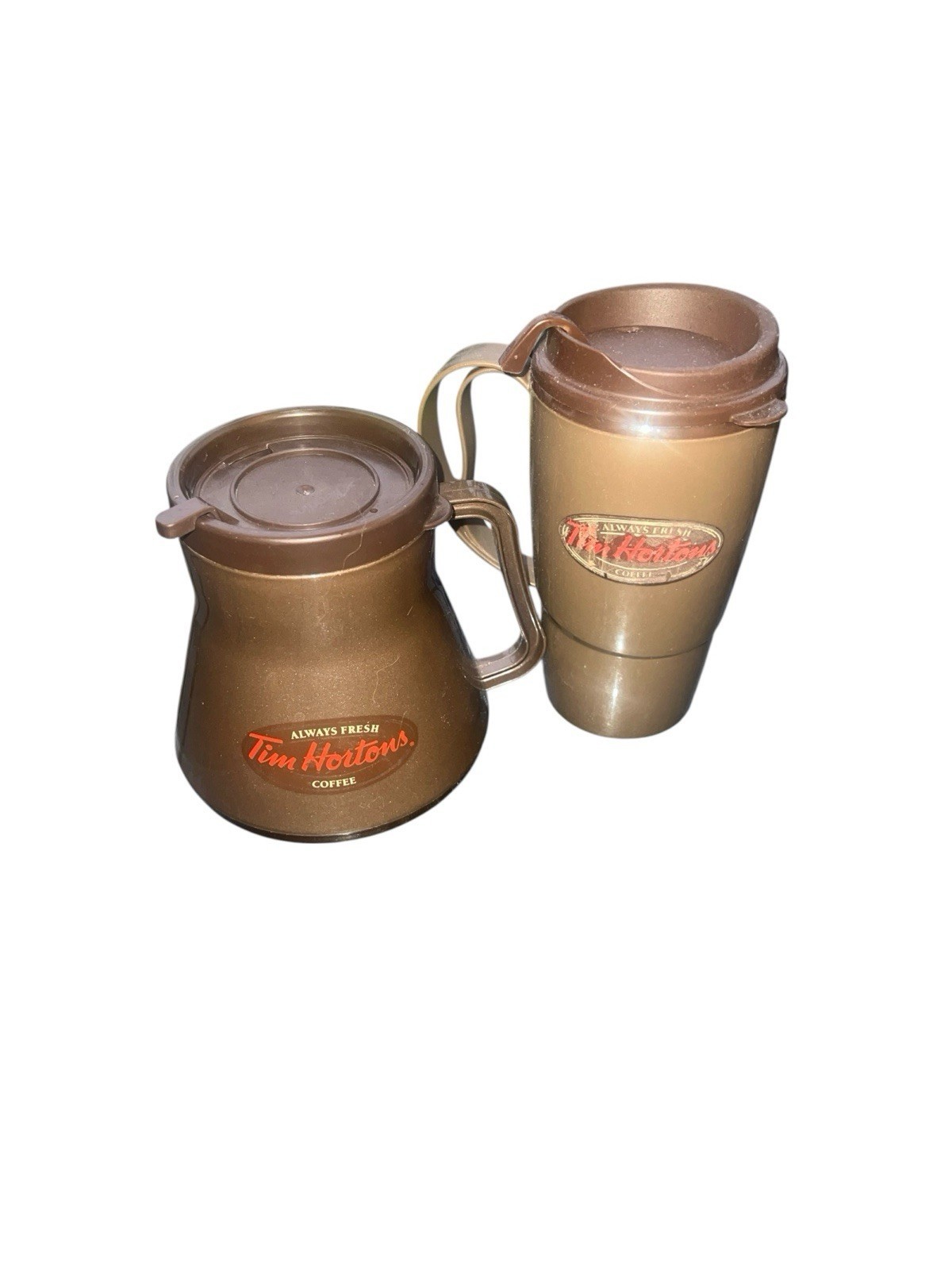 - TIM HORTONS COFFEE TRAVEL MUG X2 BAKED GOODS WIDE BASE NON TIPPING INSULATED