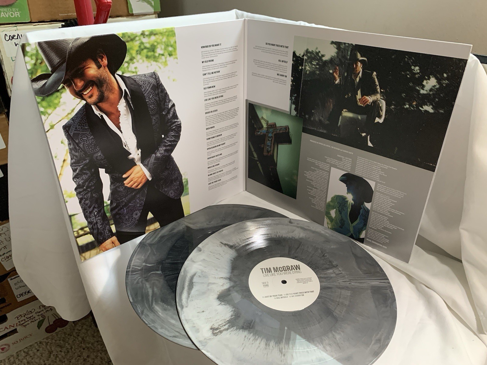 This is a super nice record set of 2 albums of Tim McGraw. Sold exclusively at Walmart, in which the records themselves were slate in color as shown. Collected but not played.