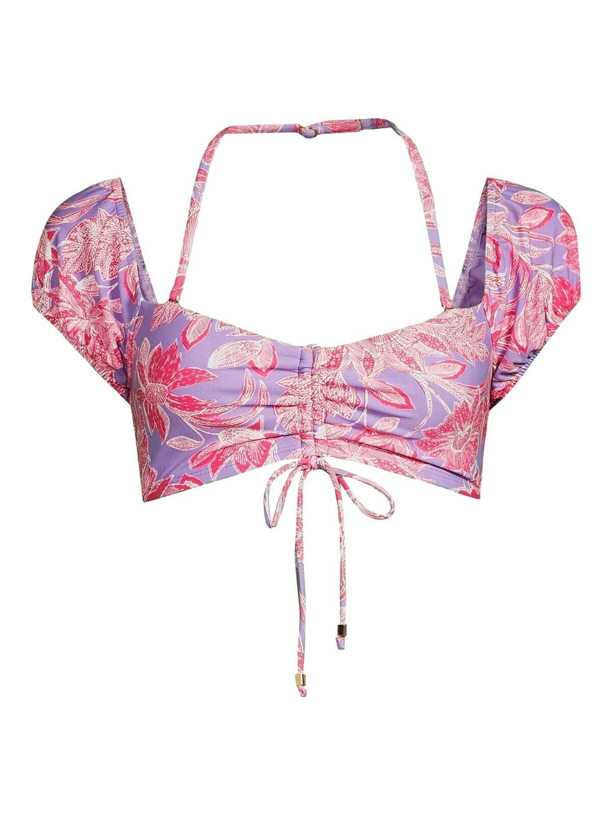 Style your look from beach to boardwalk with Time and Tru?s Sweetheart Off-The-Shoulder Swimsuit Top. Two looks in one, you can remove the straps for an attention-getting top without the halter support. Finished in a pretty print, this Swimsuit Top from Time and Tru is must-have for the summer.