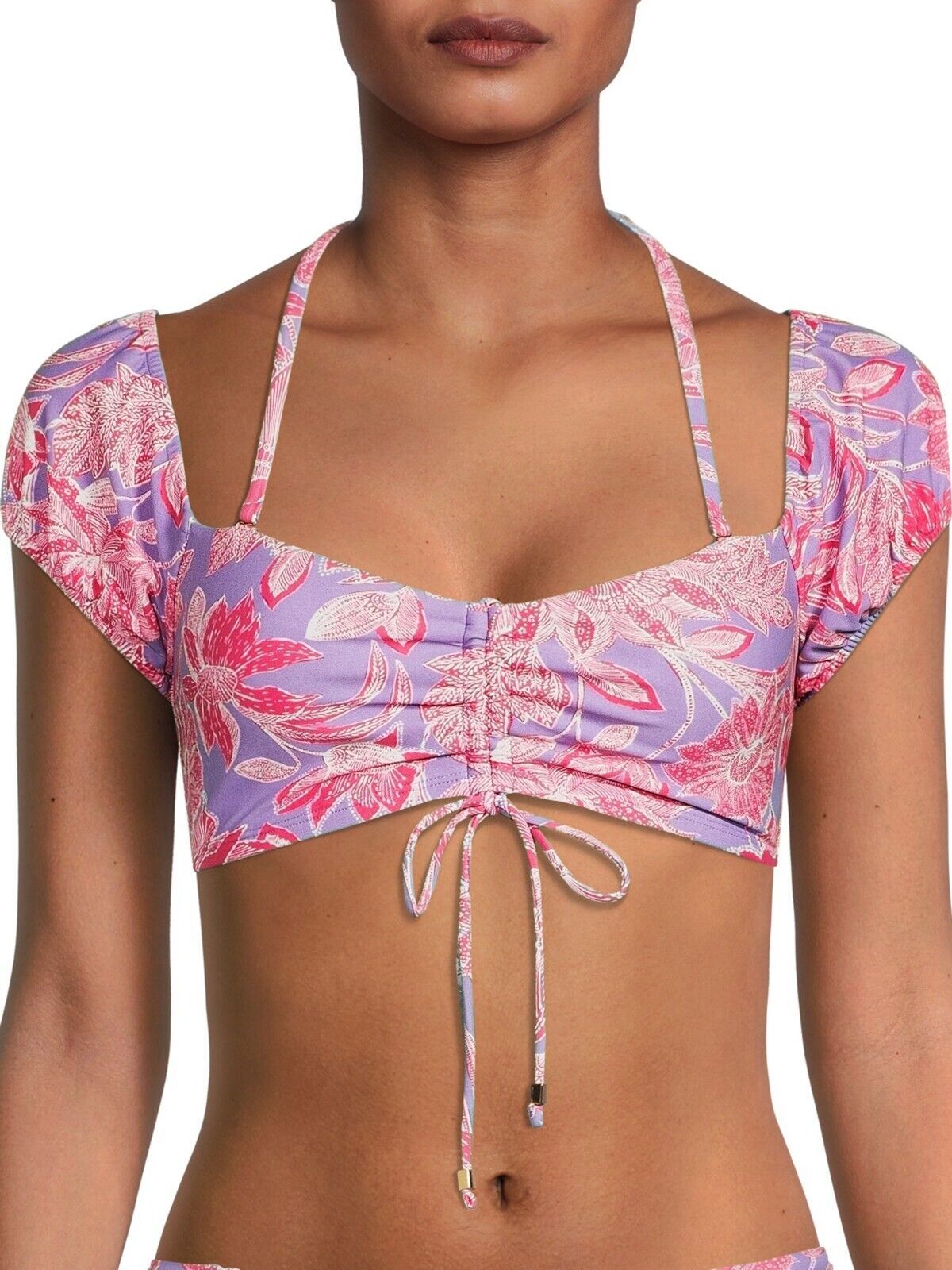 Time And Tru Women's Printed Off Shoulder Swim Top Multicolor Size 3X(24W-26W)