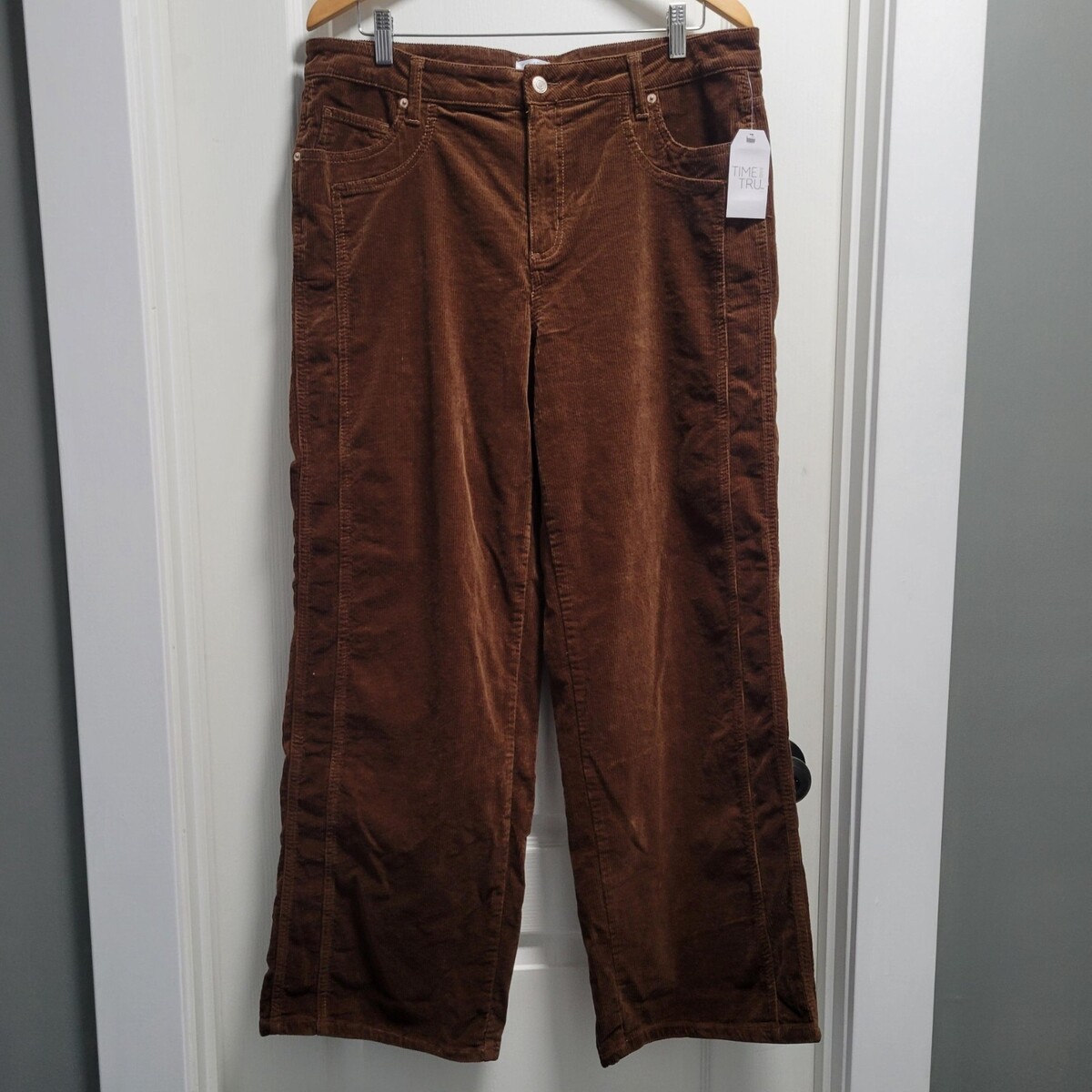 - Time And Tru Women’s Size 14 Corduroy High Rise Wide Leg Pants 30" Inseam Brown