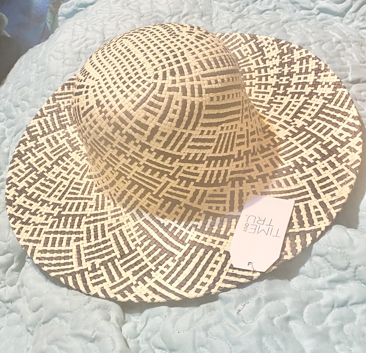 - Time And Tru Women's Wide Brim Hat Sun Hat 2 Tone Straw Hat Black And Tan 0ne Sz