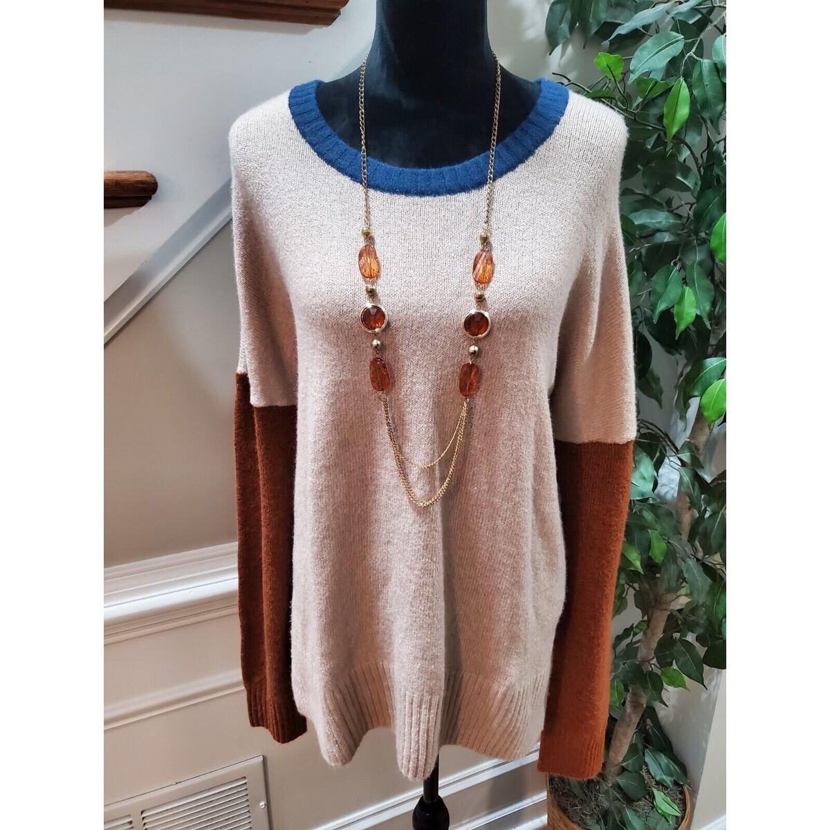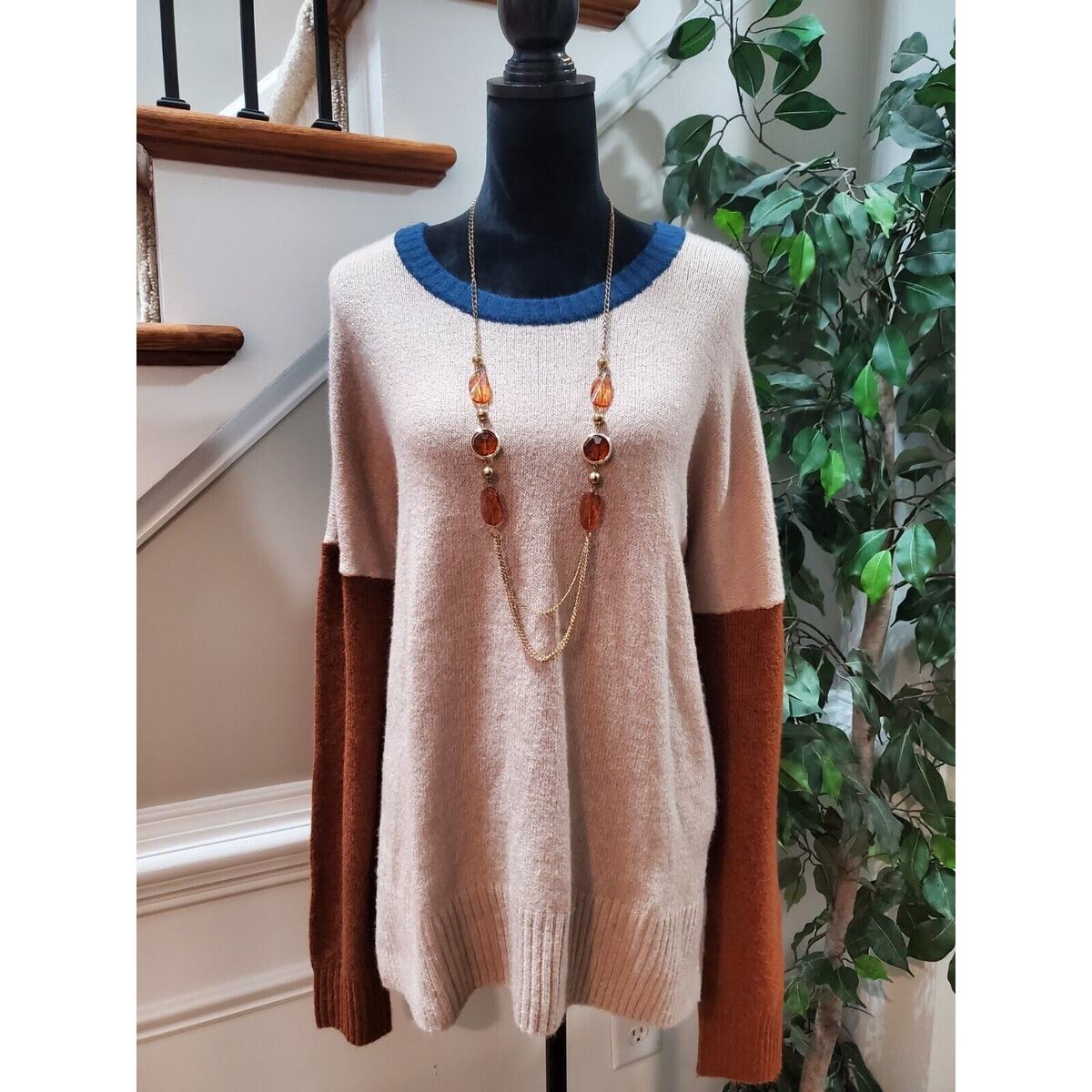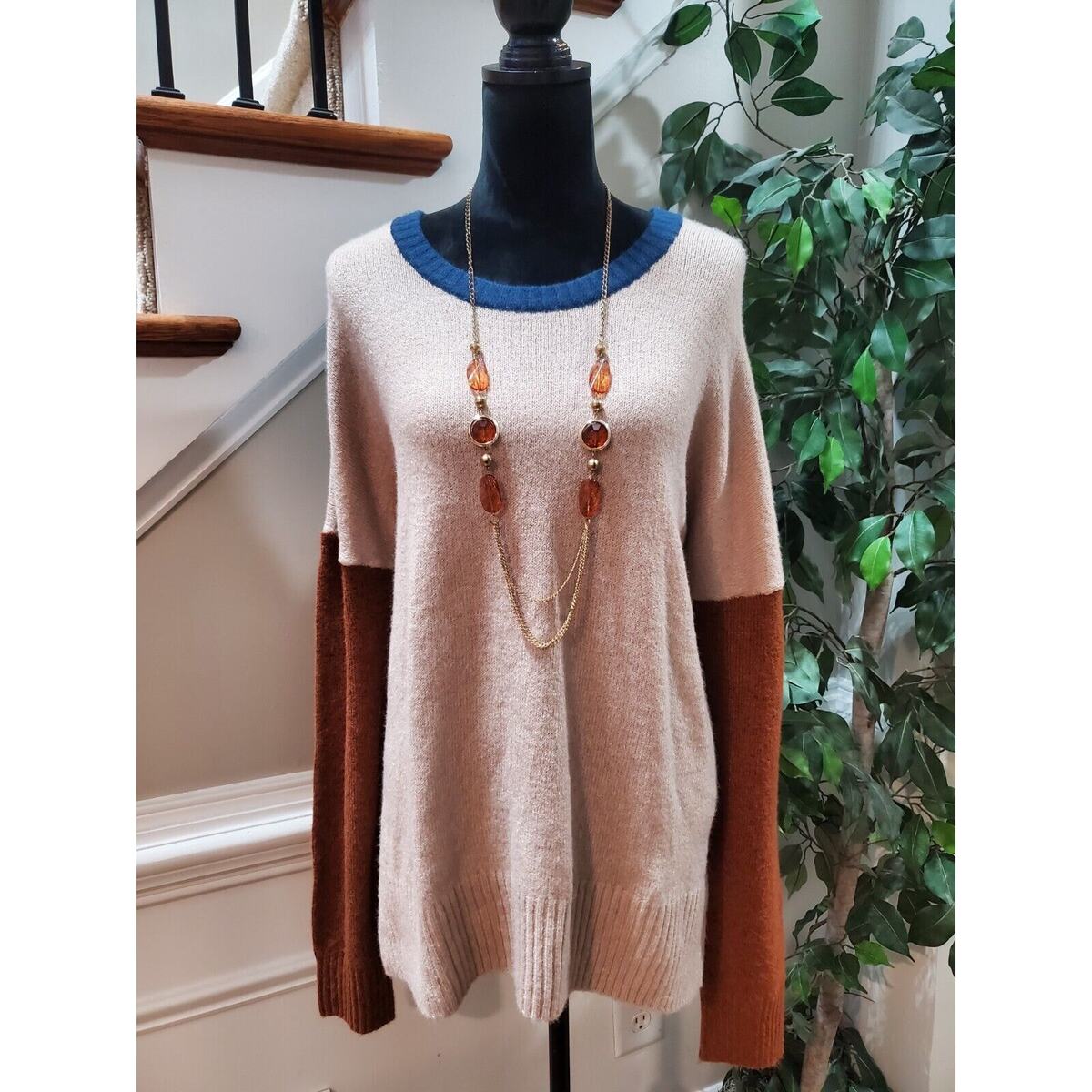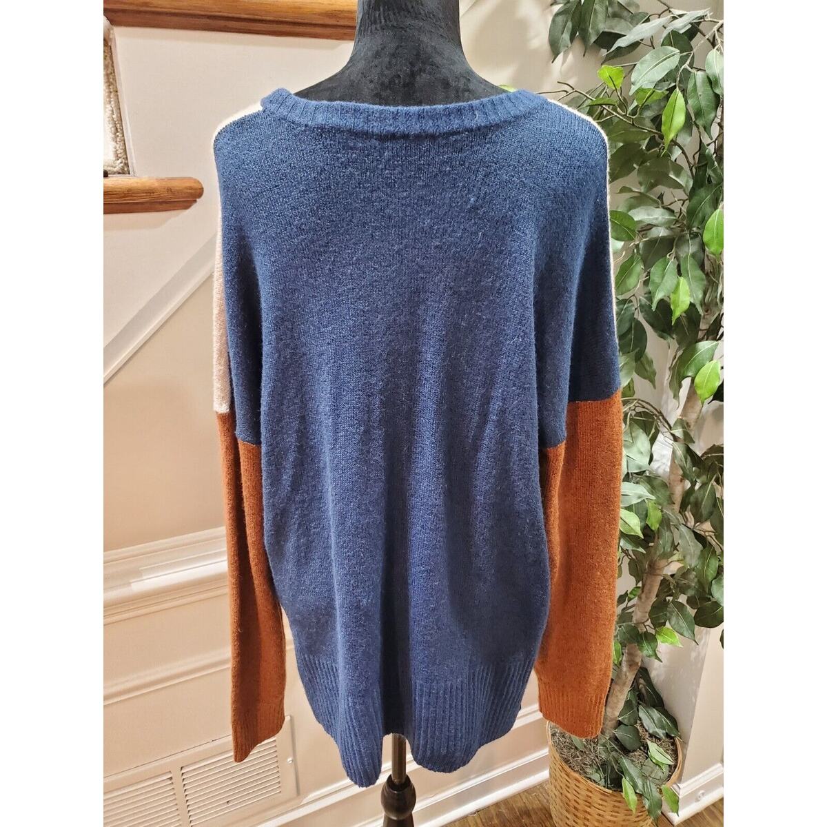 Time & Tru Women Beige & Blue Round Neck Long Sleeve Super Soft Sweater Size 3XL
